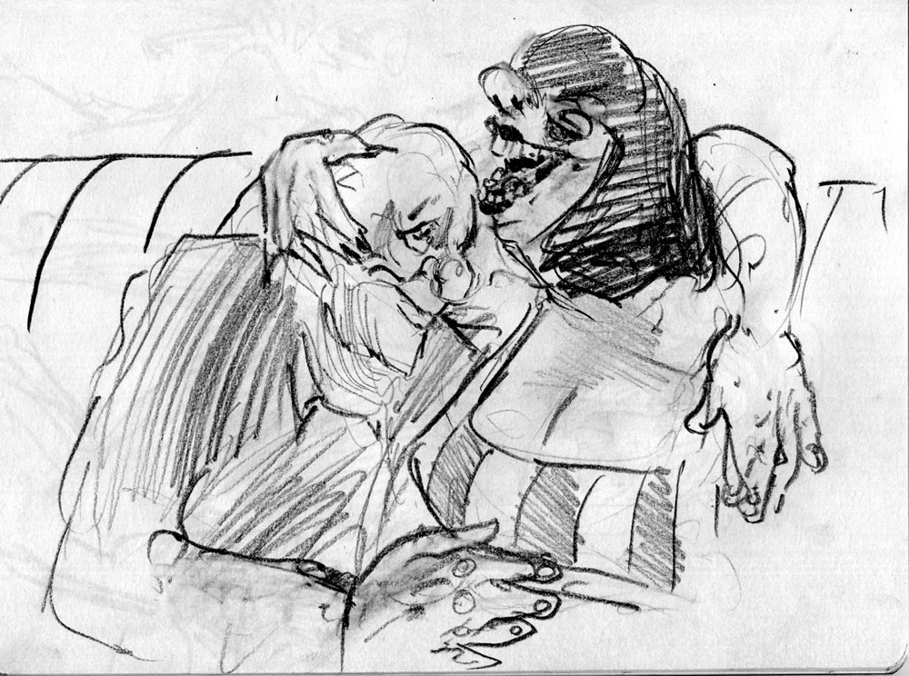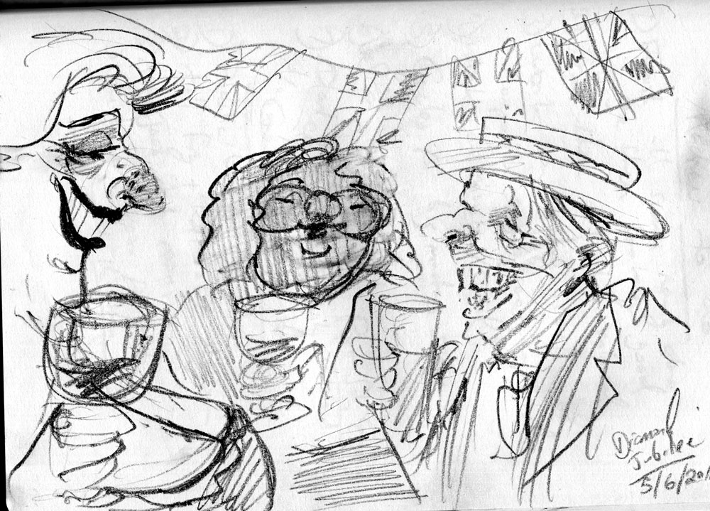 John Berger said that every drawing is autobiographical by nature. What must people think about my drawings! My drawings are actually about people. People who have earned their faces. Good, bad or weird, there is a celebration of the well lived life. Even when that life amounts to gross excess or even callous disregard for others. We are the sum total of the granular day to day, minute to minute life we lead. Drawing for me is a kind of topography of lives lived and to extend the map metaphor, I am drawing destinations on a journey. It is a knowing wink and a nod that my drawings give back to me because they know that when I see them sparkle with decay, I too am equally doomed. Under the impenetrable gray English sky we can both laugh at the absurdity of it all.