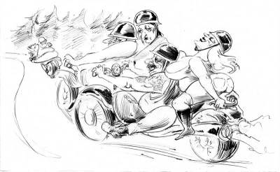 8 MarAfter dishing out more money than I ever would have thought for a pen on Ebay, I struggled to get what the fuss was about. The pen was no ordinary one. I am referring to the Mont Blanc 149 piston fountain pen. It is regarded by many as the best fountain pen in the world and according to some artists, it is a fine machine capable of keeping up with the hand and mind of the artist. After receiving it, I tested it on several sketch book pages. It was unremarkable. It felt sluggish and the line wasn’t as varied or as interesting as I had hoped. A big fat waste of cash. Then, I had a brainstorm. Perhaps a pen like this needed a surface that was firm enough to let it glide. Like a skater on freshly surfaced ice. I also imagined that bright white paper may be the best option as black ink would look most crisp. So, I purchased bright white illustration board and unscrewed the fine torpedo cap of the big (some call it a man’s pen but that is grossly narrow in my view) torpedo shape. Wow! It handled like the Porsche it really is. With no idea of what I was going to make other than a vague exploration of Portsmouth characters, the drawings flowed with the ideas and the pen was tremendously exciting to use. My reason for buying the pen in the first place was to have a new tool. More than that, to have a tool that combined what I love about etching and drawing and was more expedient to use in upcoming explorations into graphic novels and personal projects. Much more to come.