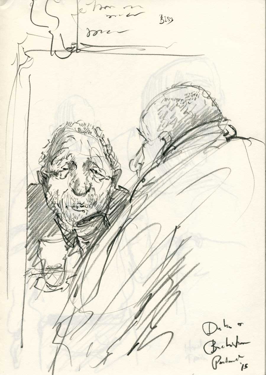 It is hard to think of any other activity that forces you to merge your inward and outward vision in the way that drawing does. This is particularly true of Reportage drawing and it’s greatest conceit is that it is a record of pure observation. What it really is is a record of thought, synthesis, presumption, judgment and looking. It is an act that requires the artist to participate in a dialogue about what is worth drawing and, importantly, why should we care? This is is the job of the artist. To make us care. To draw us in to a particular vision of the world that challenges us to think about the circumstances of others. The nature of the struggle to live and keep your head above water. This granularity is so perfectly captured in the rough marks of a drawing that the whisper or shout of humanity is ever present (even in less confident drawings). Enjoy!